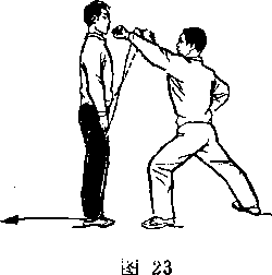 通过对练项目的练习,可以从中进一步体会和理解单练套路 中各个动作的技击含义和实战用法,能够间接地提髙单练动作的 技术水平。另外,由于练习对练项目要求意识逼真,动作熟练和 准确,双方配合协调,从而还可以培养运动员勇敢、机智、敏捷 和互相协作的精神。