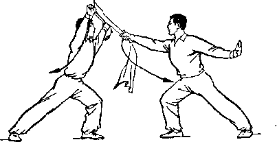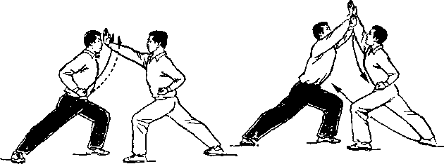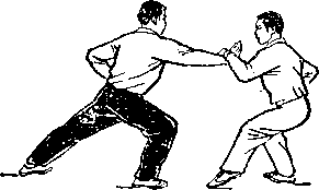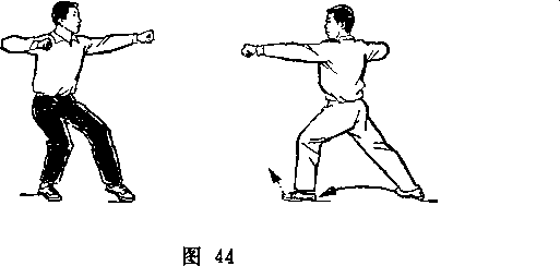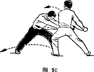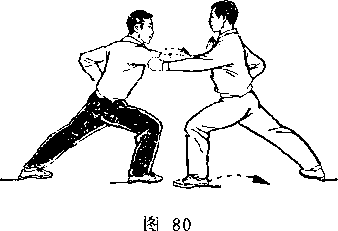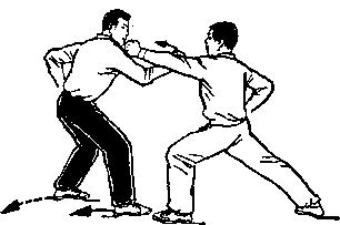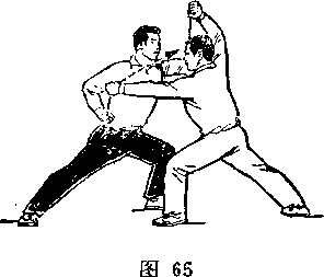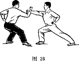 距离适当:是指双方一进一退的步幅调节要适当。双方距离 太近,肢体伸展不开,动作会受影响;距离太远又显得松散,攻 防方法不真实。