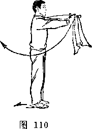 身向右前方平抡,用枪杆横击甲头部;目视甲头部(图259)。
