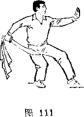 (1)右腿屈膝提起,脚面绷直;两拳拳心向上抱于腰间(图