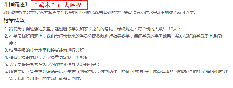 目前在武术世家上的第四节课,这几节课孩子的变化很大,很感谢教练的指导,对孩子很负责任,对比了好几家,最后选择武术世家,试听的第一节课就报名了。非常不错。价格也很合理,练武术就到武术世家。